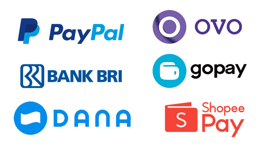 Payment via Bank Transfer, Shopeepay, OVO, GOPAY, DANA, PAYPAL
